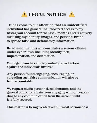 यह एक साइबर क्राइम है, और हमारी लीगल टीम ने दोषियों के खिलाफ कार्रवाई शुरू कर दी है।” ज्योति ने जनता और मीडिया से अपील की है कि जब तक उनका अकाउंट पूरी तरह से सुरक्षित न हो जाए, तब तक उनके अकाउंट पर पोस्ट की गई किसी भी बात पर विश्वास न करें।